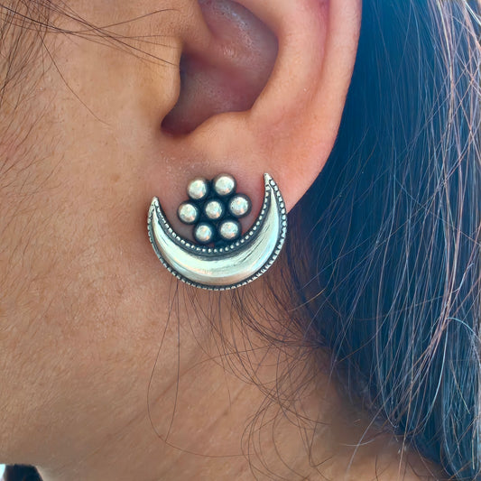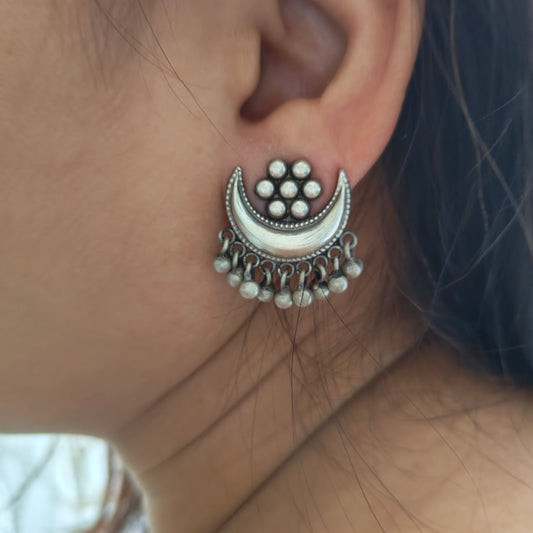 925 Silver Kudi Flower Stud One Chand Dangler Temple Earrings With Intricate carvings Silver Ball Drops