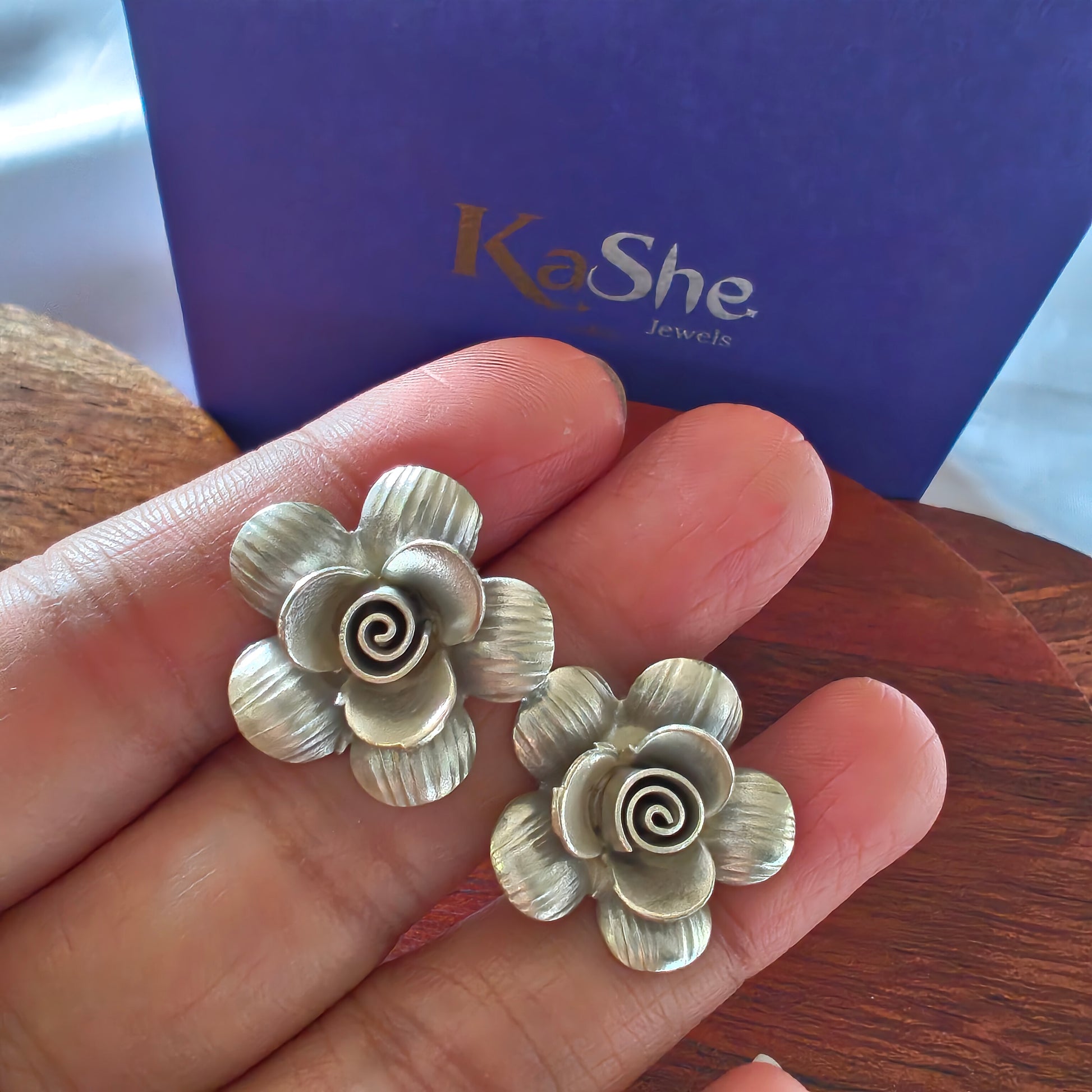 - Light Weight Daily Work Wear 3D 925 Silver Flower Earrings
