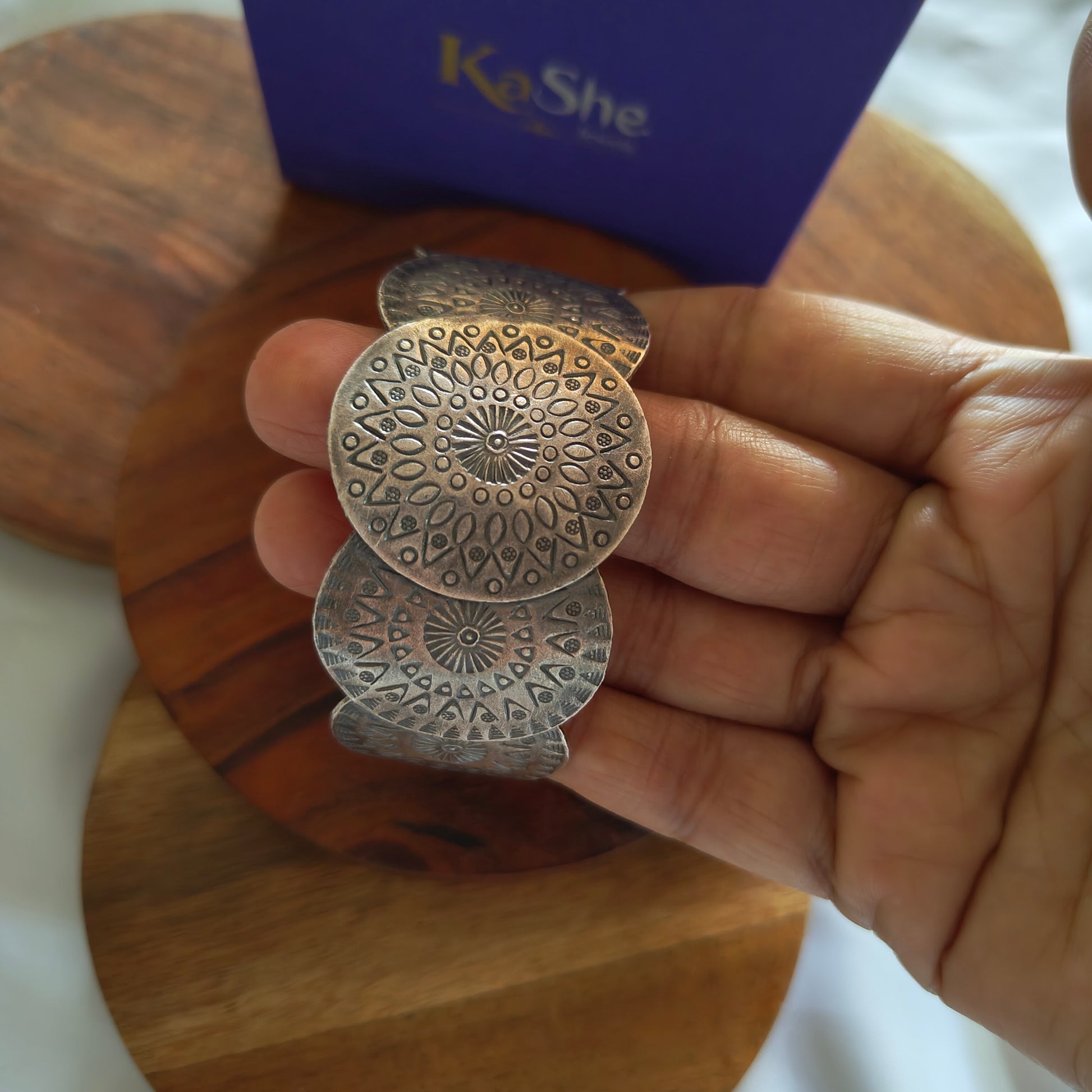 Statement Exclusive Circular Patterned 925 Silver Cuff Bracelet